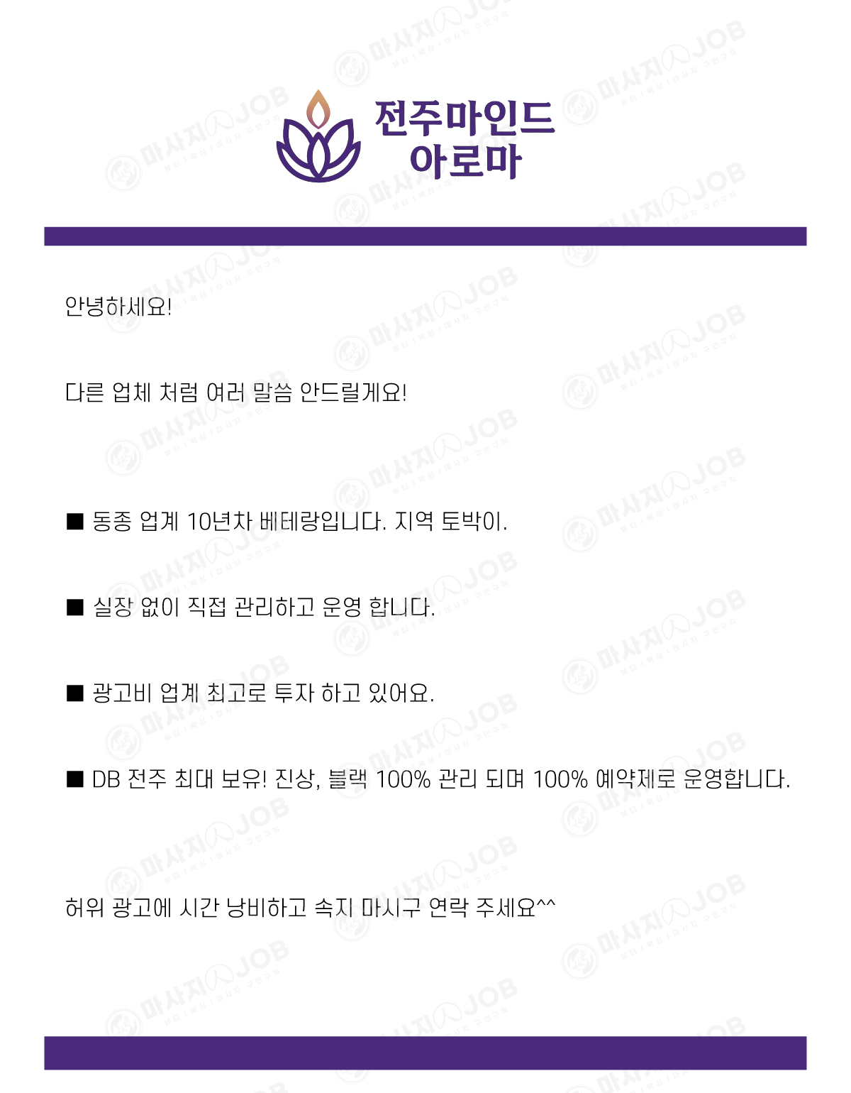 마사지인잡의 동의없이 재배포 할 수 없으며 상기 채용정보는 구직목적으로만 이용 할 수 있습니다.